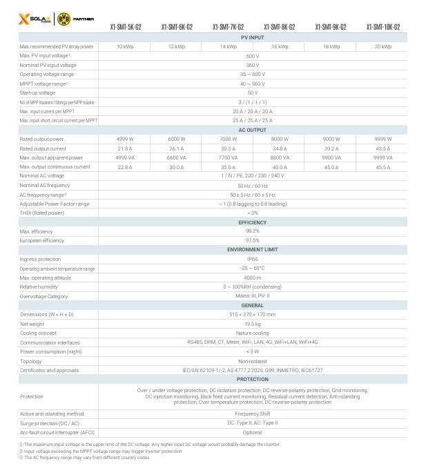 Với 3 MPPT độc lập, hỗ trợ dòng vào lên tới 20A mỗi MPPT, hiệu suất đạt 98.2%, kết hợp với khả năng bám tải – chống phát ngược lên lưới, X1-SMART-8K-G2 mang đến sự tối ưu tuyệt đối về sản lượng, an toàn và sự linh hoạt trong vận hành.