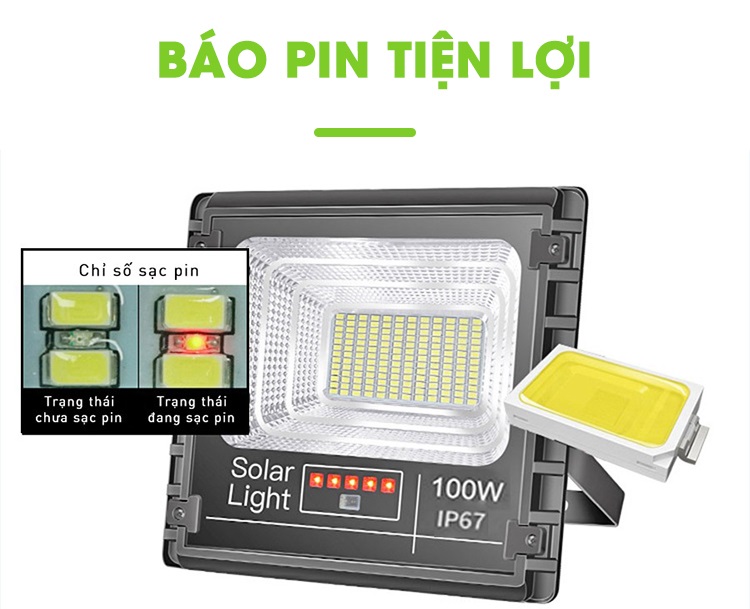 Hiển thị phần trăm pin: Điểm nổi bật của đèn năng lượng mặt trời này chính là được tích hợp đồng hồ báo phần trăm pin, giúp quý khách hàng theo dõi hoạt động của đèn tốt hơn