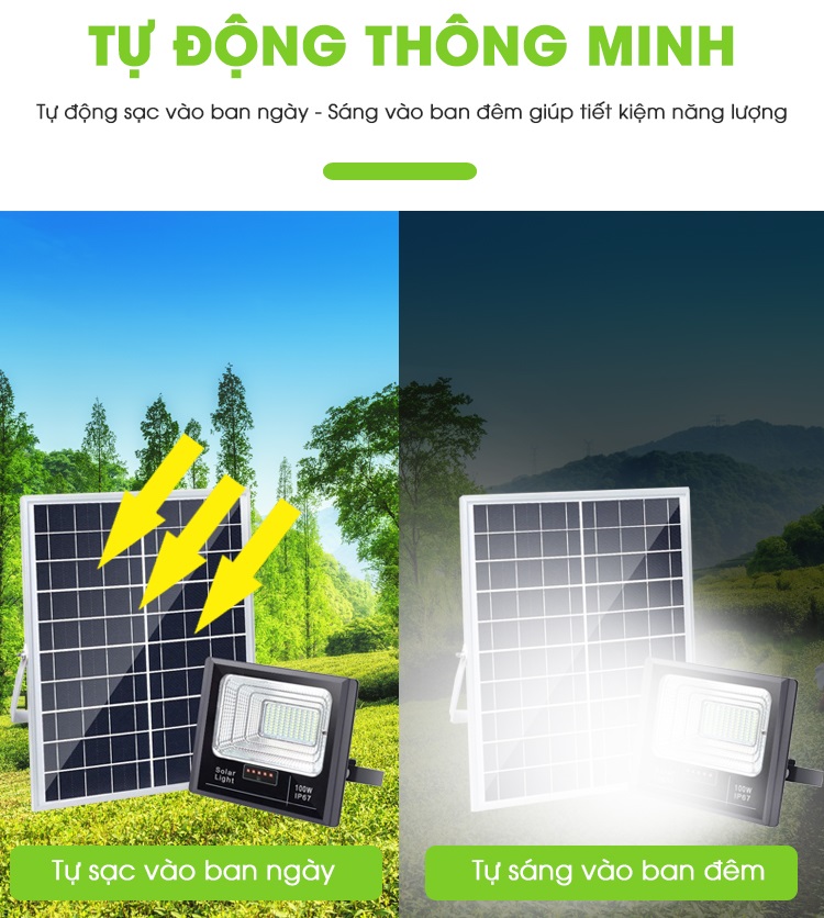 Nếu đèn tự động sáng lên có nghĩa tính năng này hoạt động tốt, nếu đèn không sáng thì kiểm tra lại dây nối từ tấm pin đến đèn hoặc yêu cầu đổi hàng.