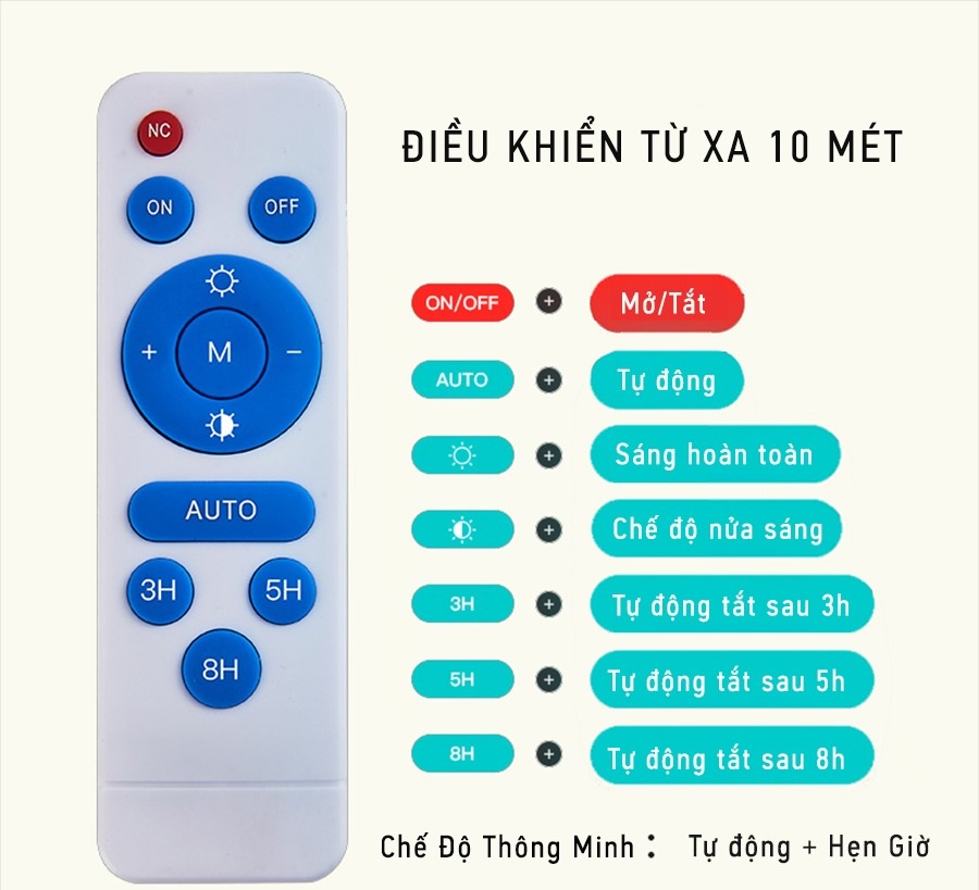 - Bật/ Tắt và tăng giảm độ sáng bất cứ lúc nào bằng chiếc Remote điều khiển từ xa.