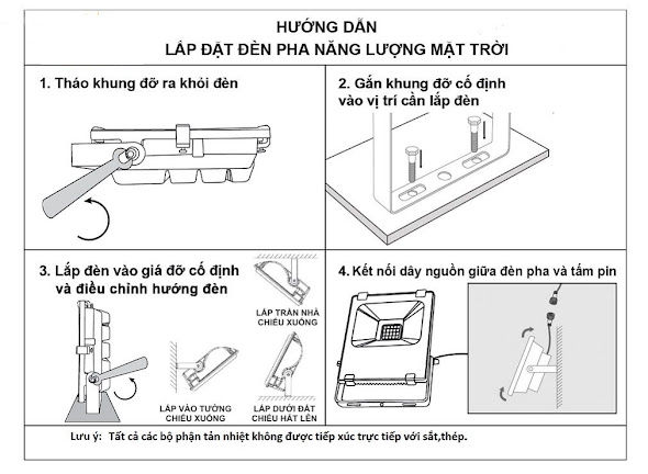 - Cố định chắc chắn đèn và tấm pin năng lượng mặt trời để tránh rơi, vỡ