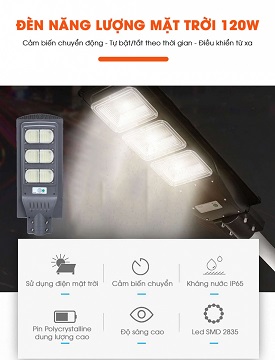 Thông số kỹ thuật đèn năng lượng mặt trời 120W giá rẻ