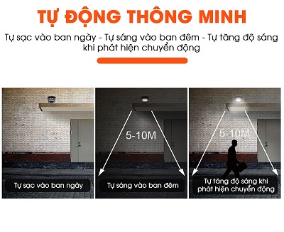 Tự động cảm ứng ánh sáng + Điều khiển Remote + cảm biến chuyển động. |
