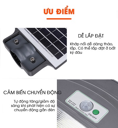 Dễ lắp đặt: Quý khách hàng có thể tự lắp đặt đèn năng lượng mặt trời dễ dàng, không cần biết kỹ thuật vẫn có thể làm được không quá 5p.