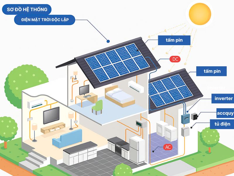 Sơ đồ kết nối hệ thống điện năng lượng mặt trời độc lập